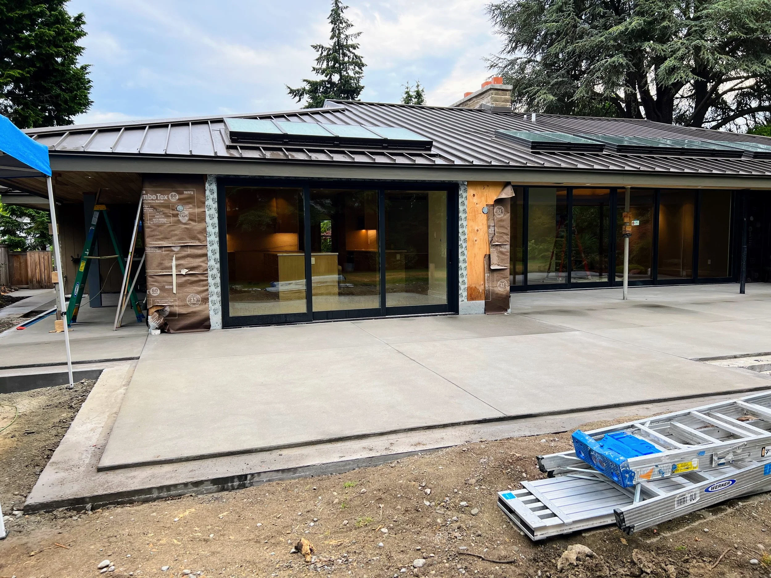 Create a side yard ADA ramped path for access to the house with summer blooming plants to be viewed from the kitchen sink.