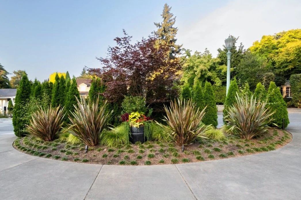Use big foliage plants and showy perennials to create an exotic vacation get away vibe. Use ornamental grasses and a succession of blooming perennials to create a beach feel, with movement, texture and color throughout the spring, summer and fall.