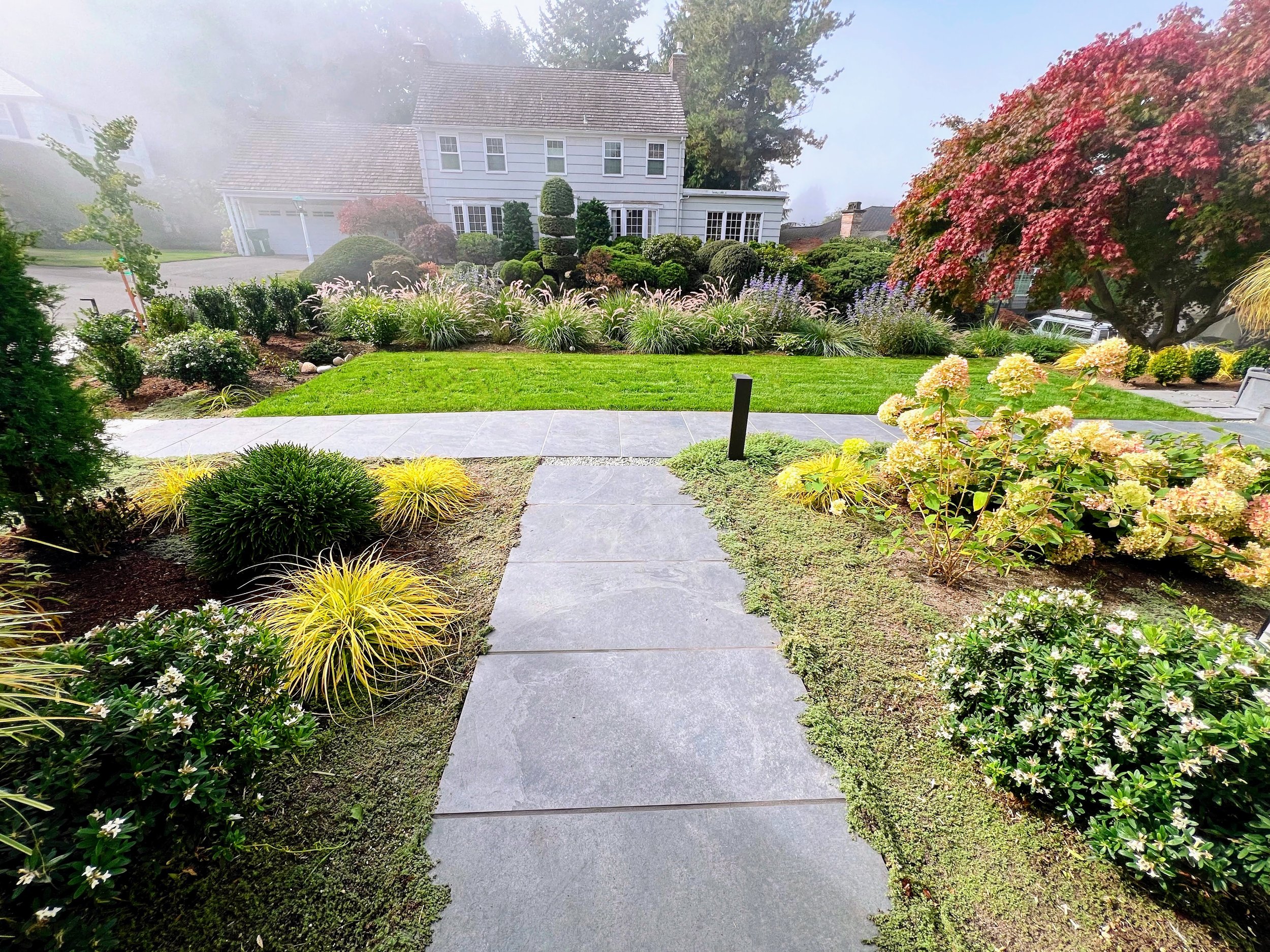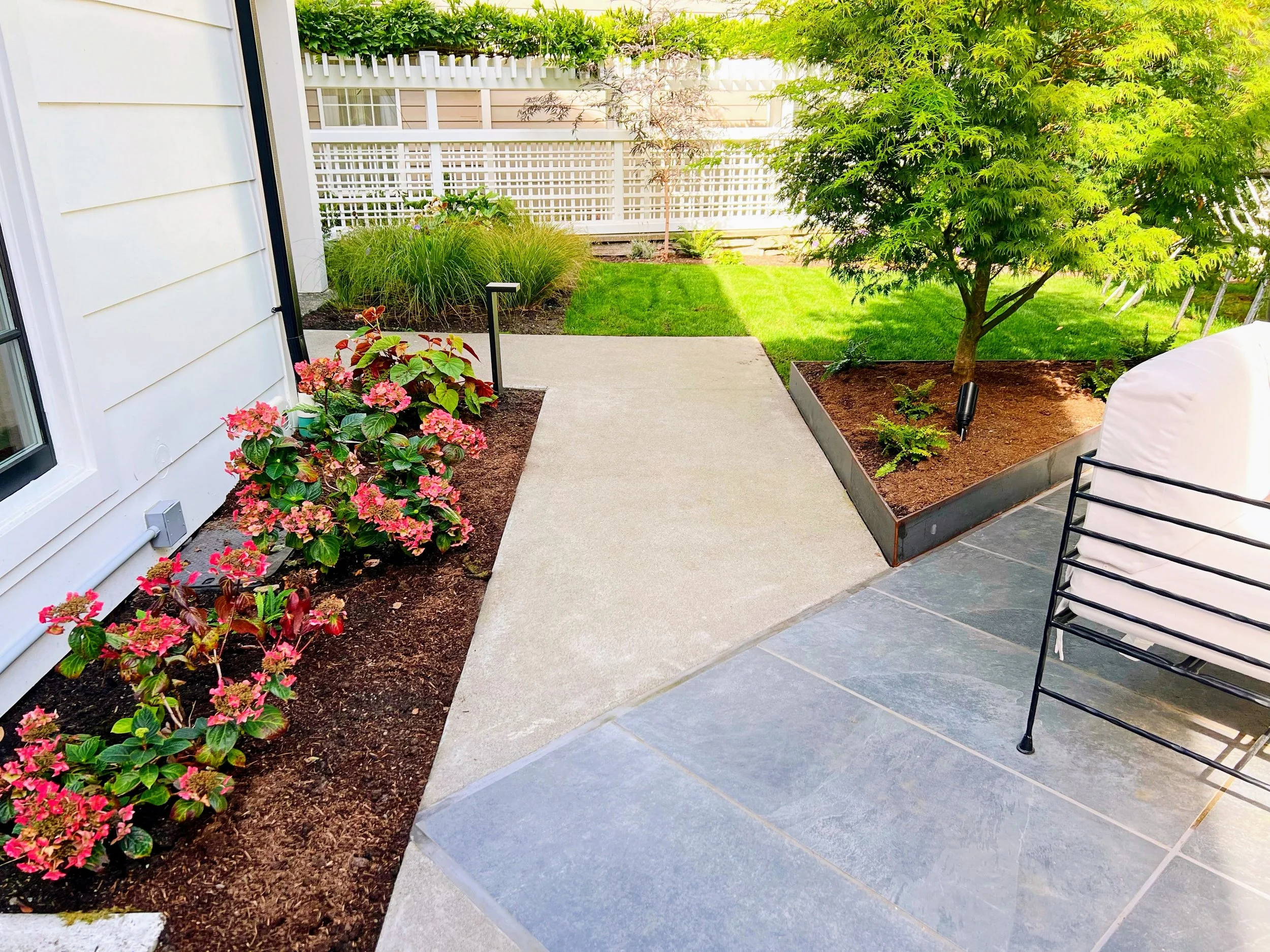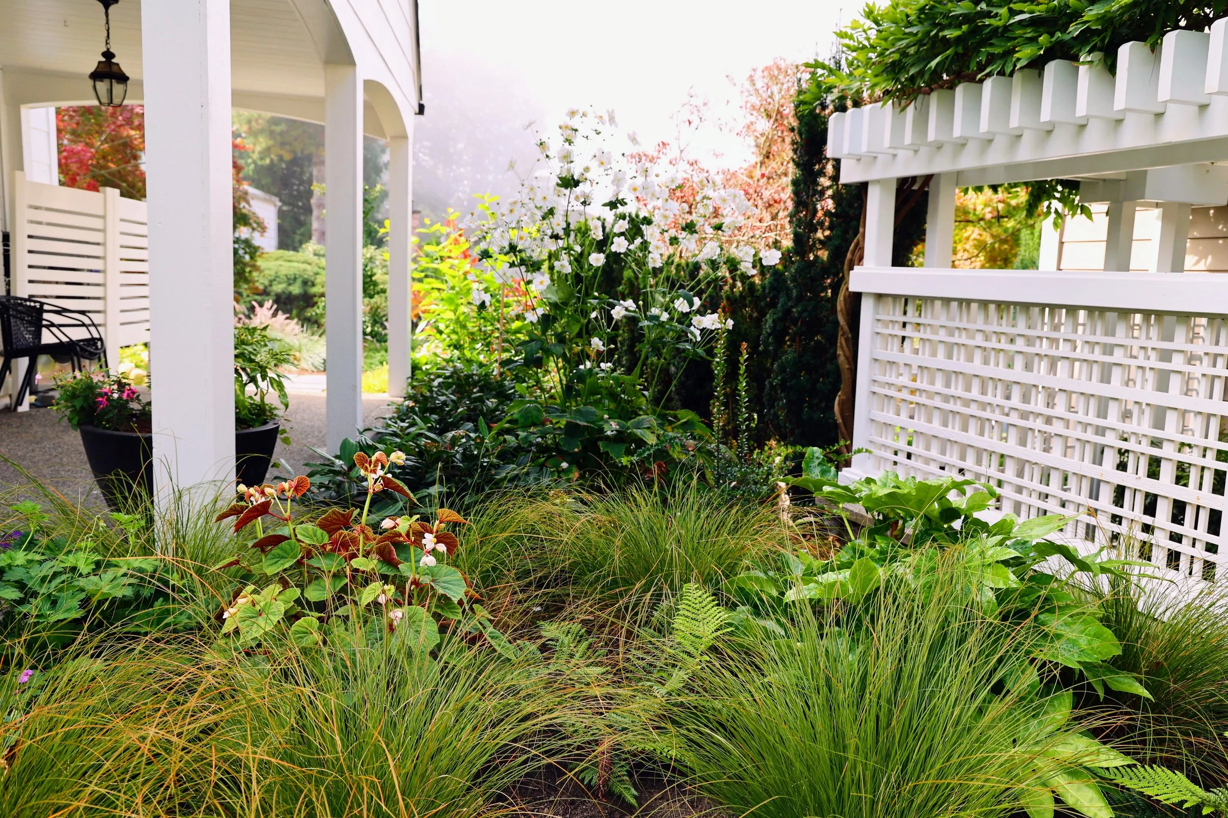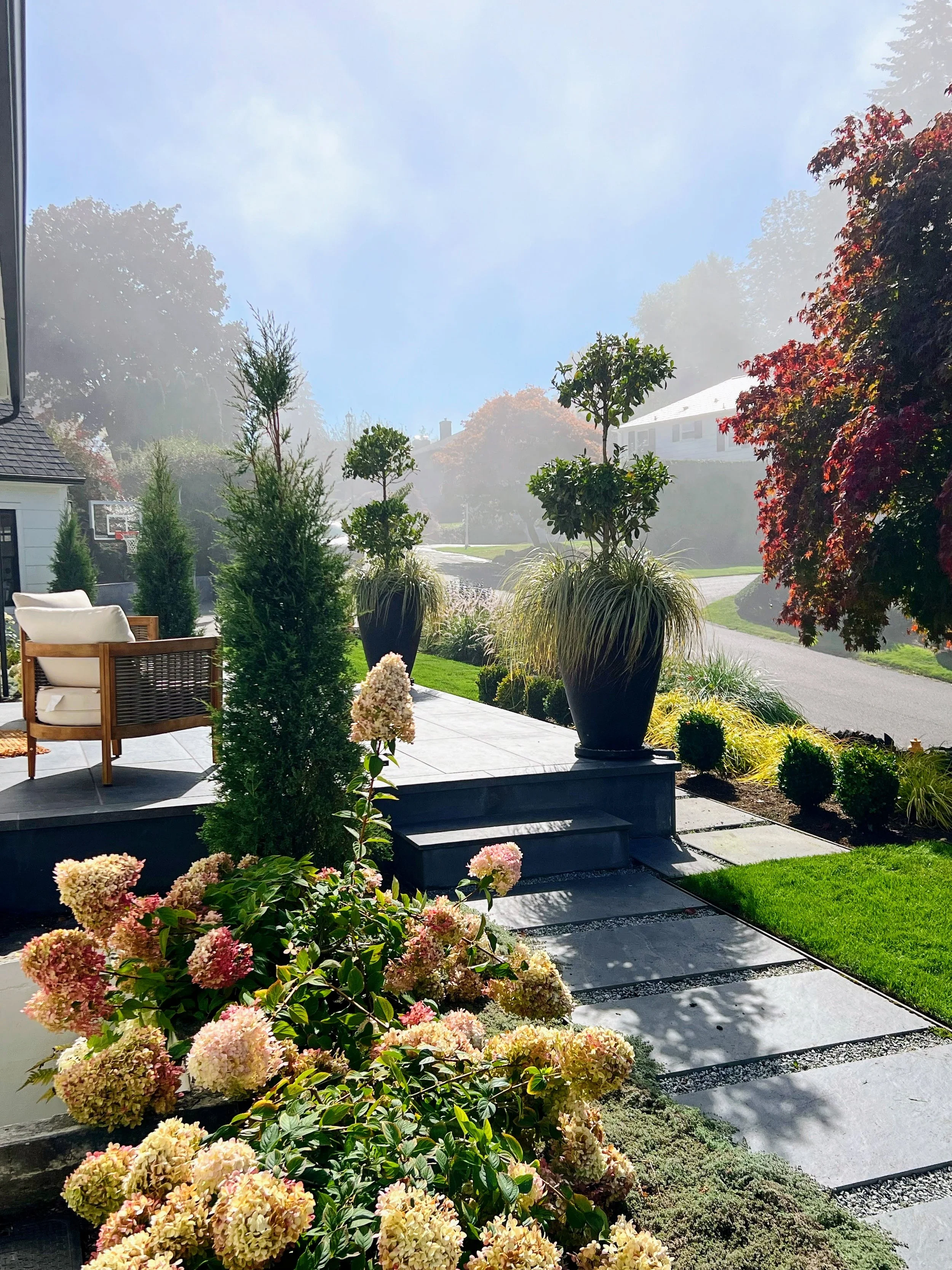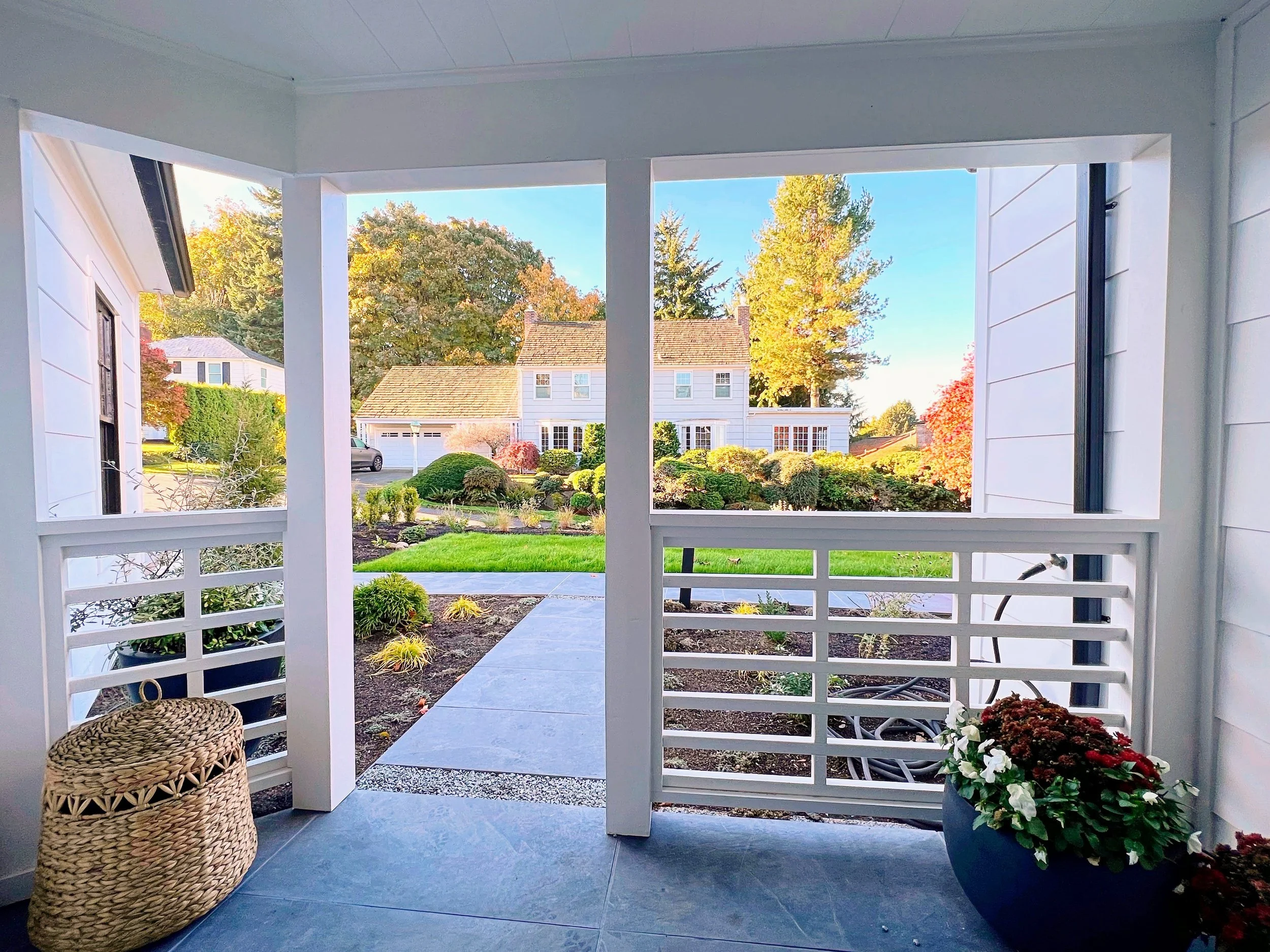 Add a sitting area in the sunny front yard where there is a territorial view.