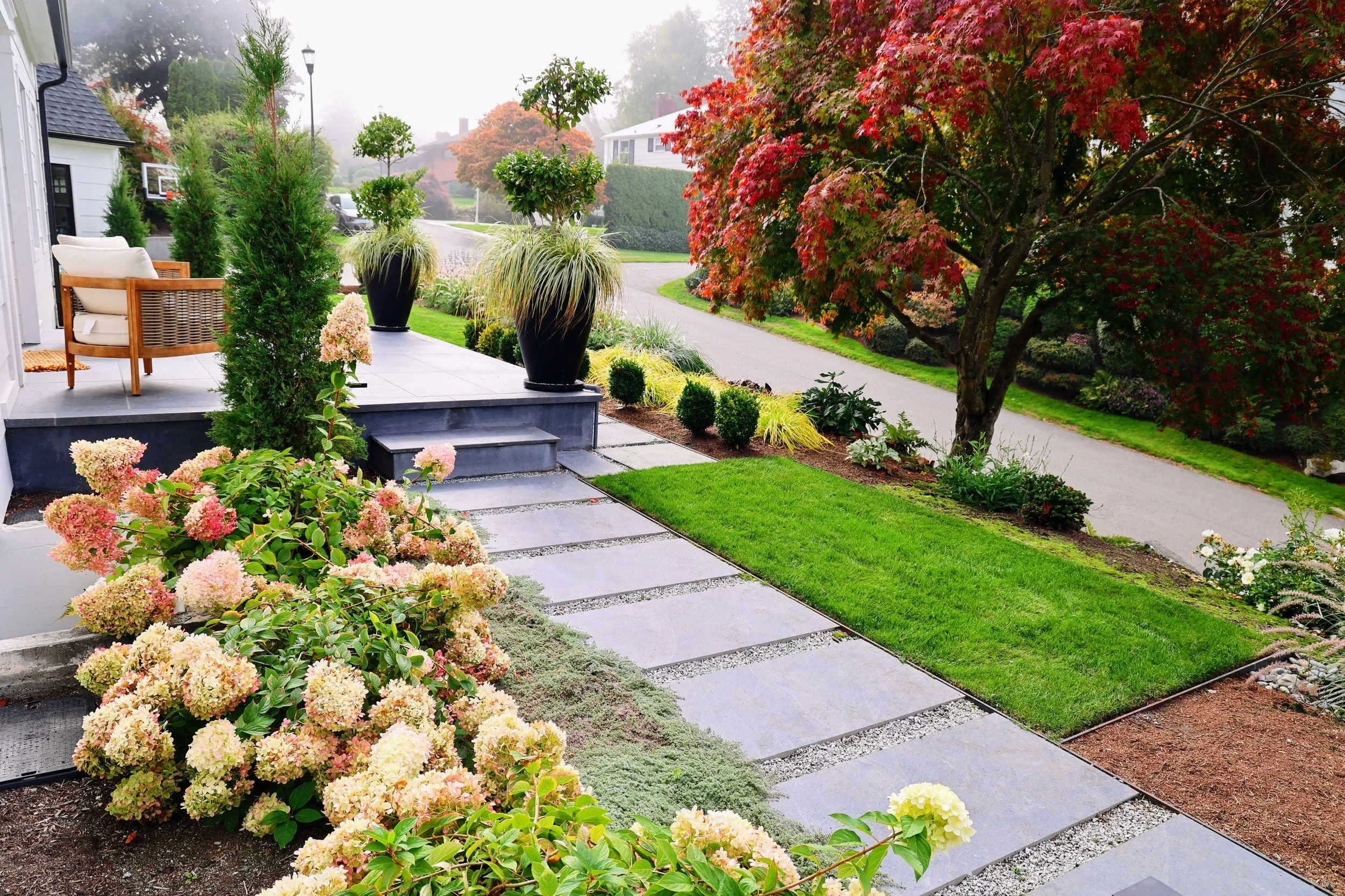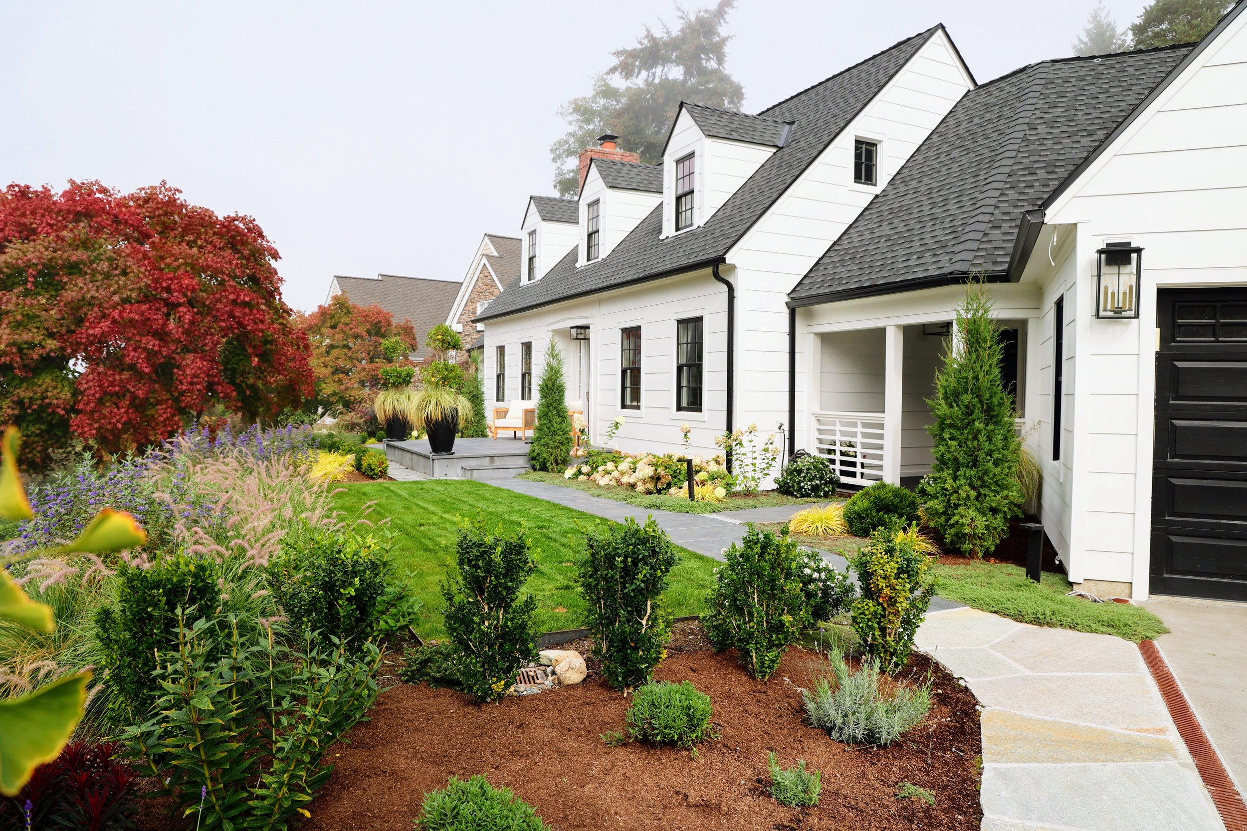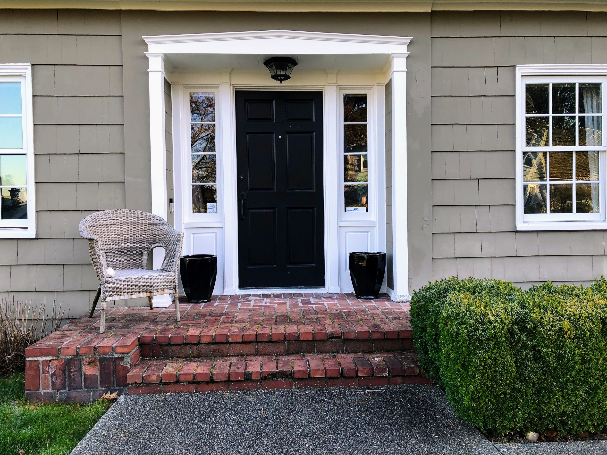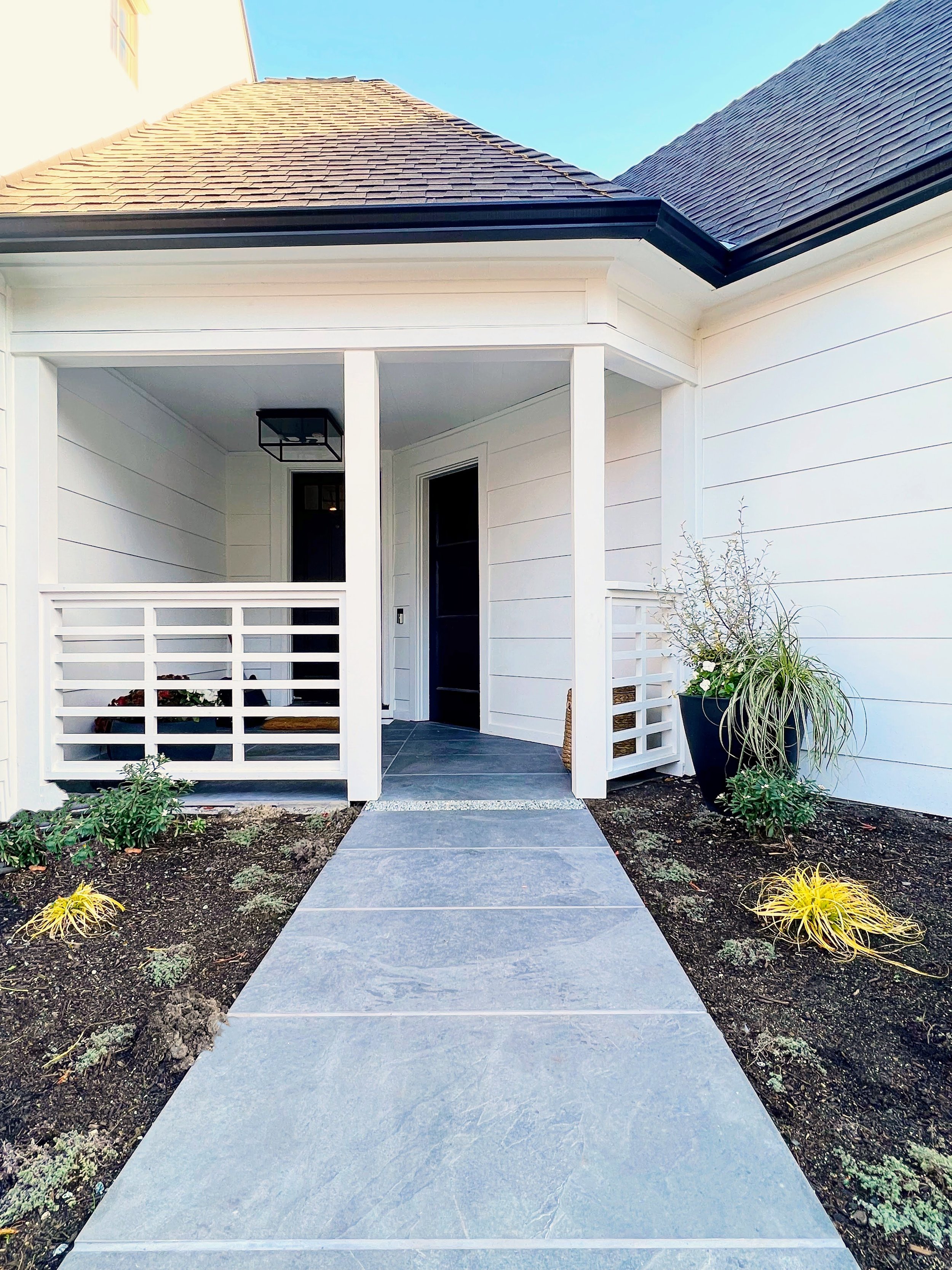Design a front porch and use container plantings to signal the front door.