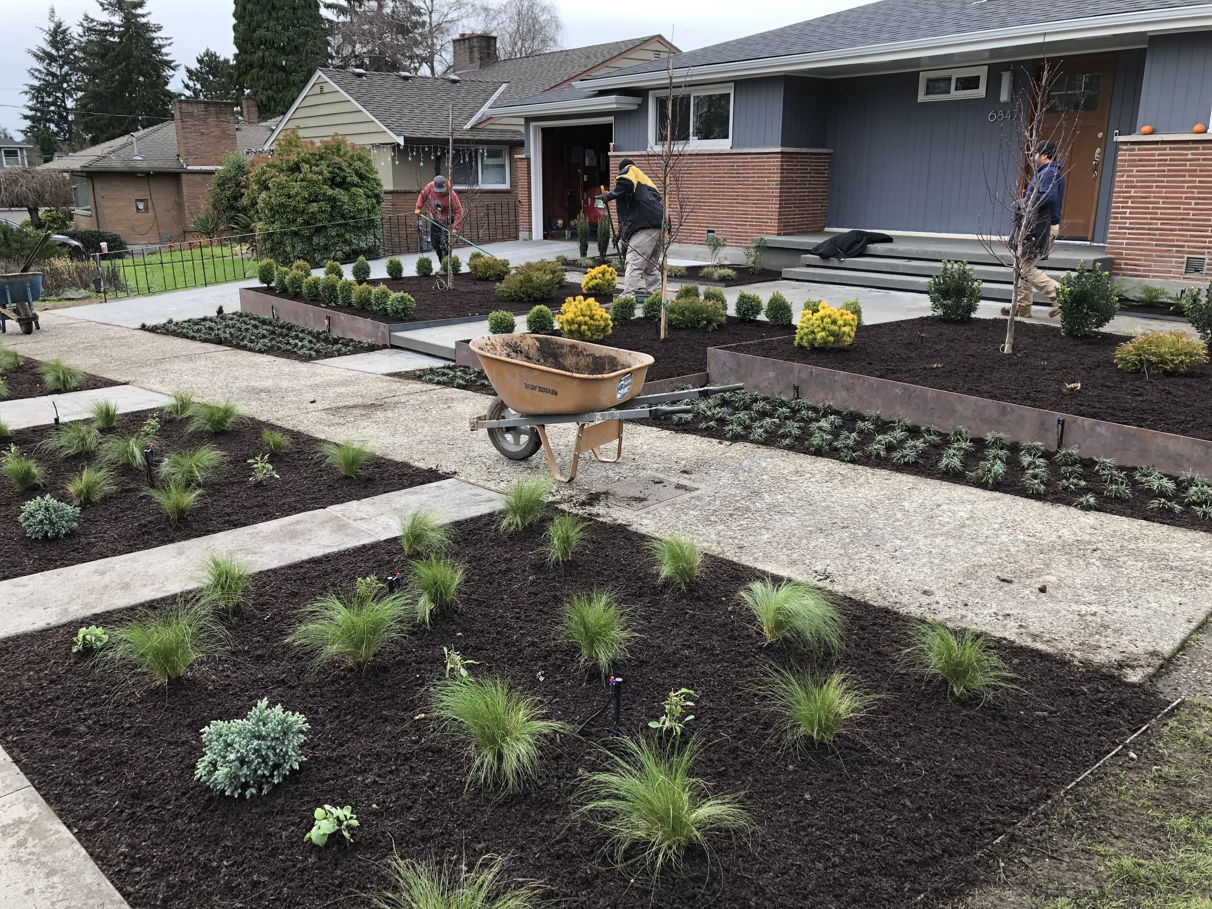 Connect hardscape details to parking strip and driveway to expand the feel and space of the garden.