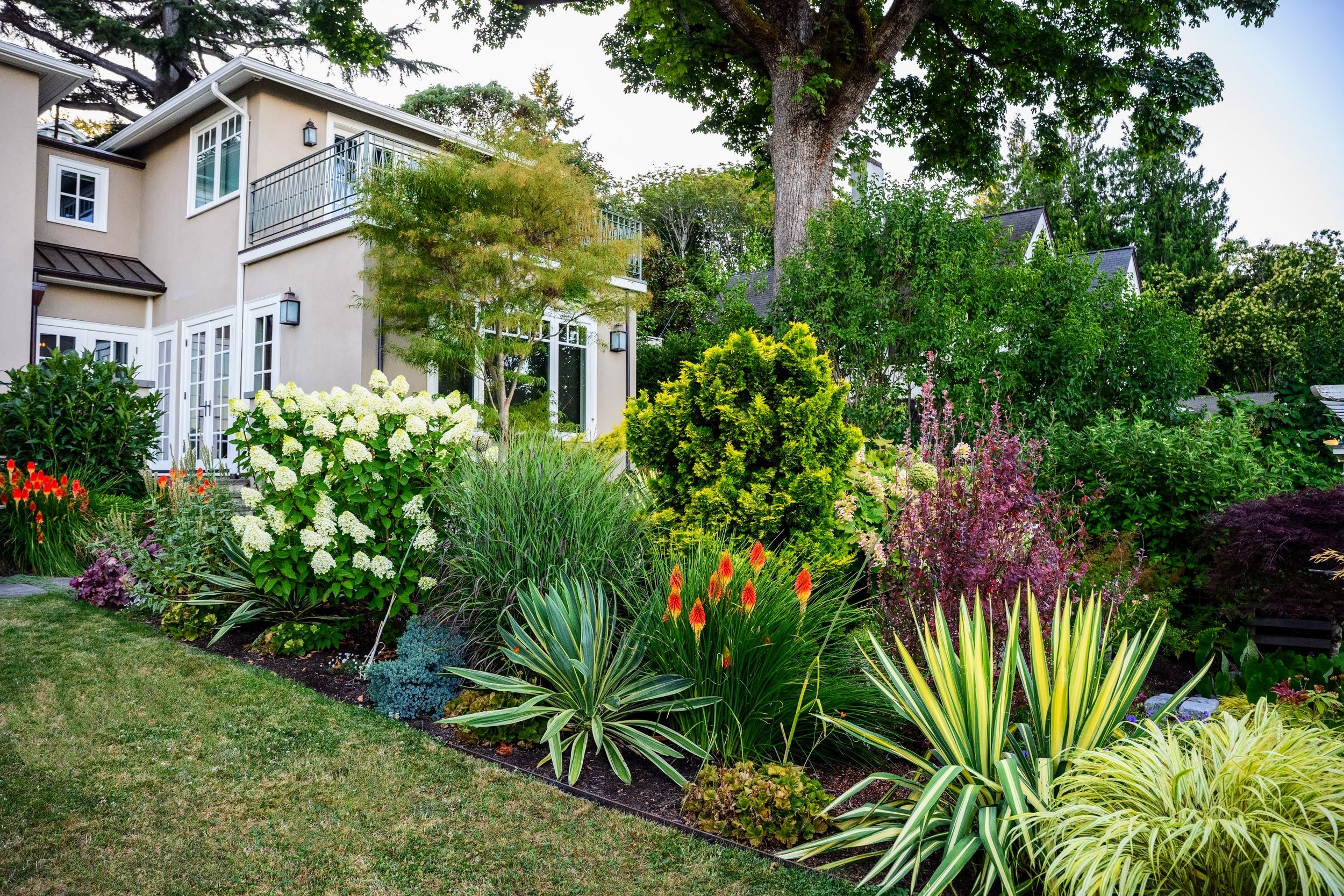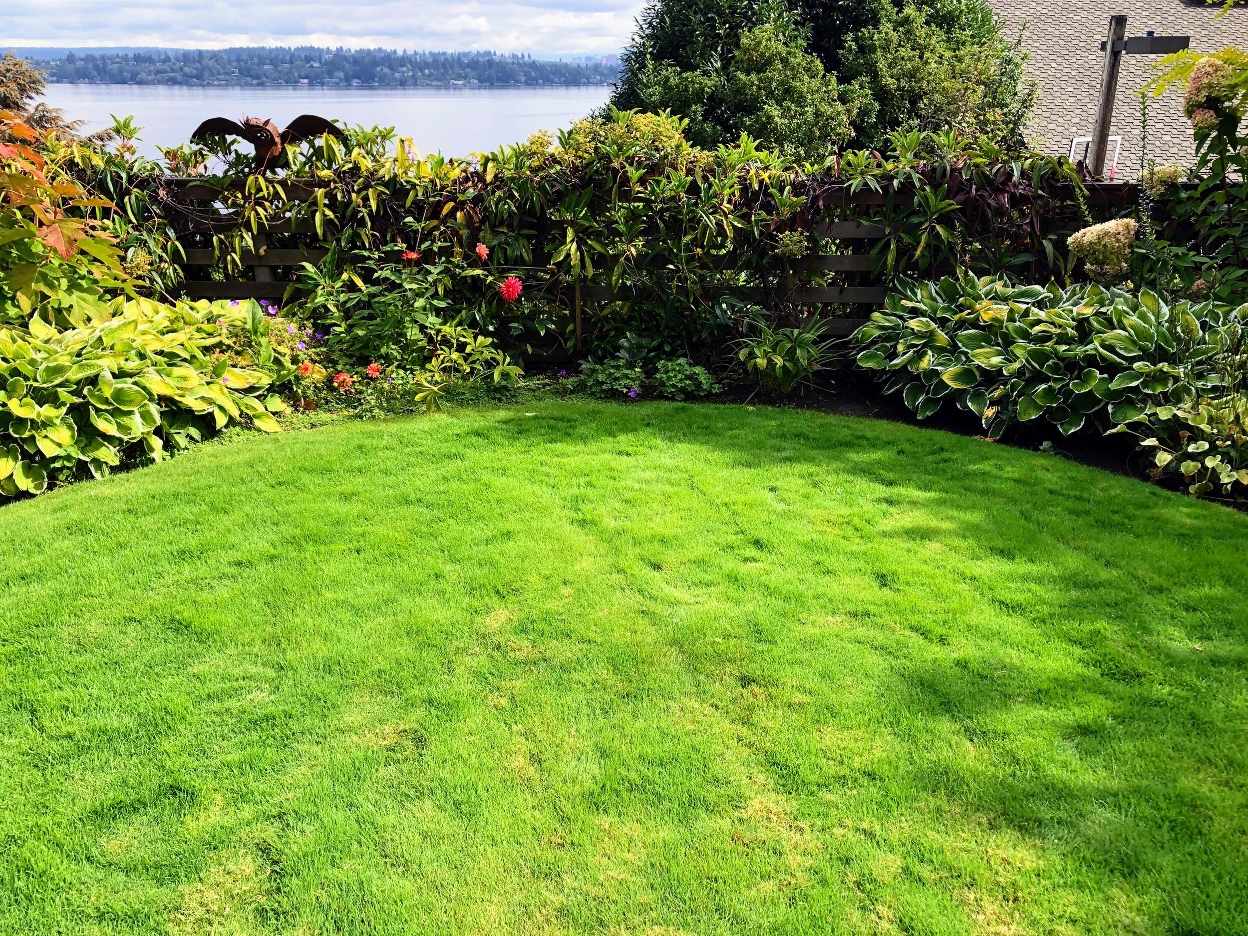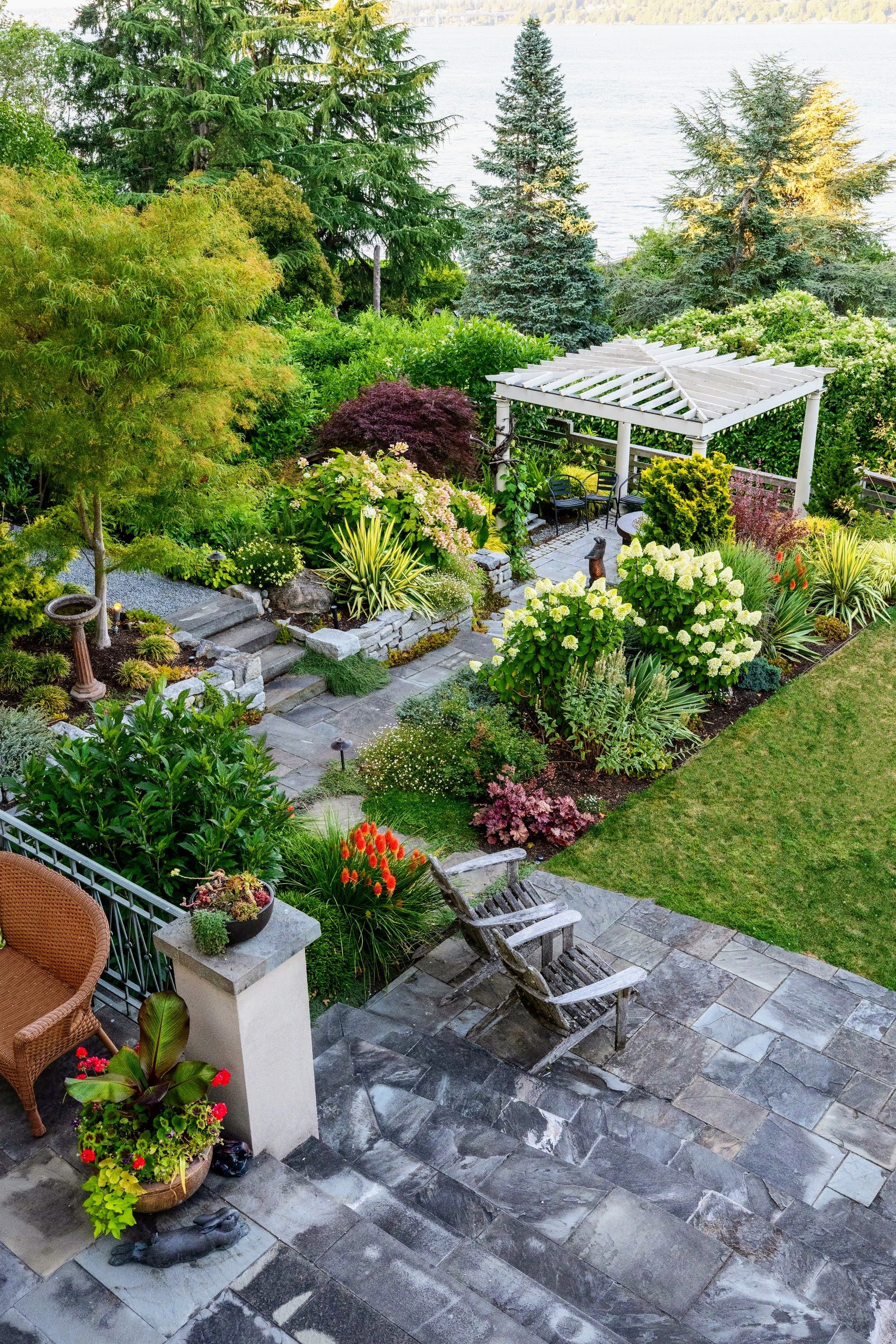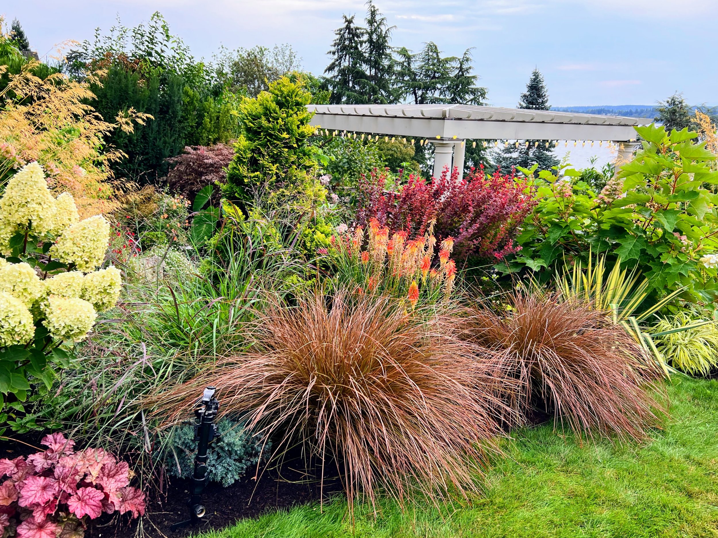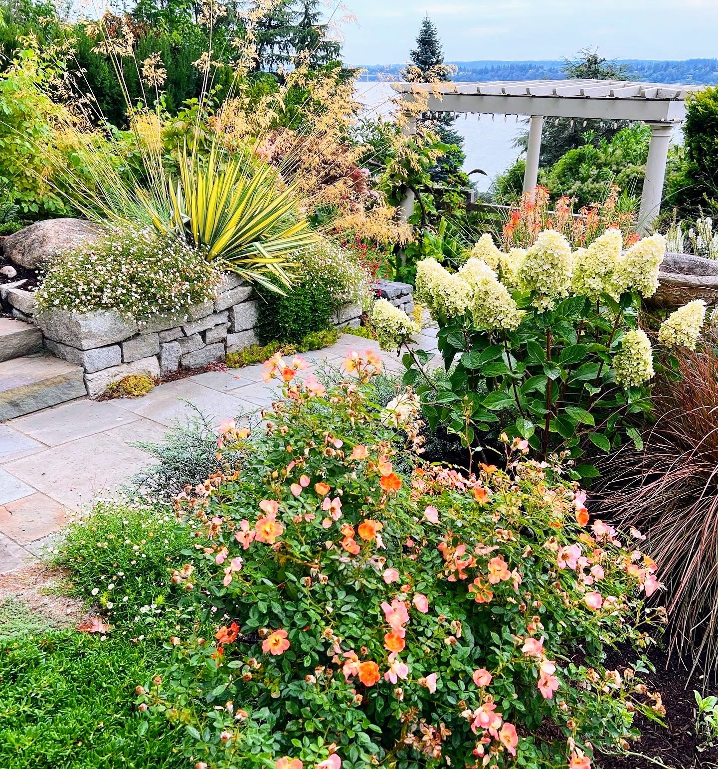 Create a planting plan with year-round color and texture while preserving the lake and mountain views.