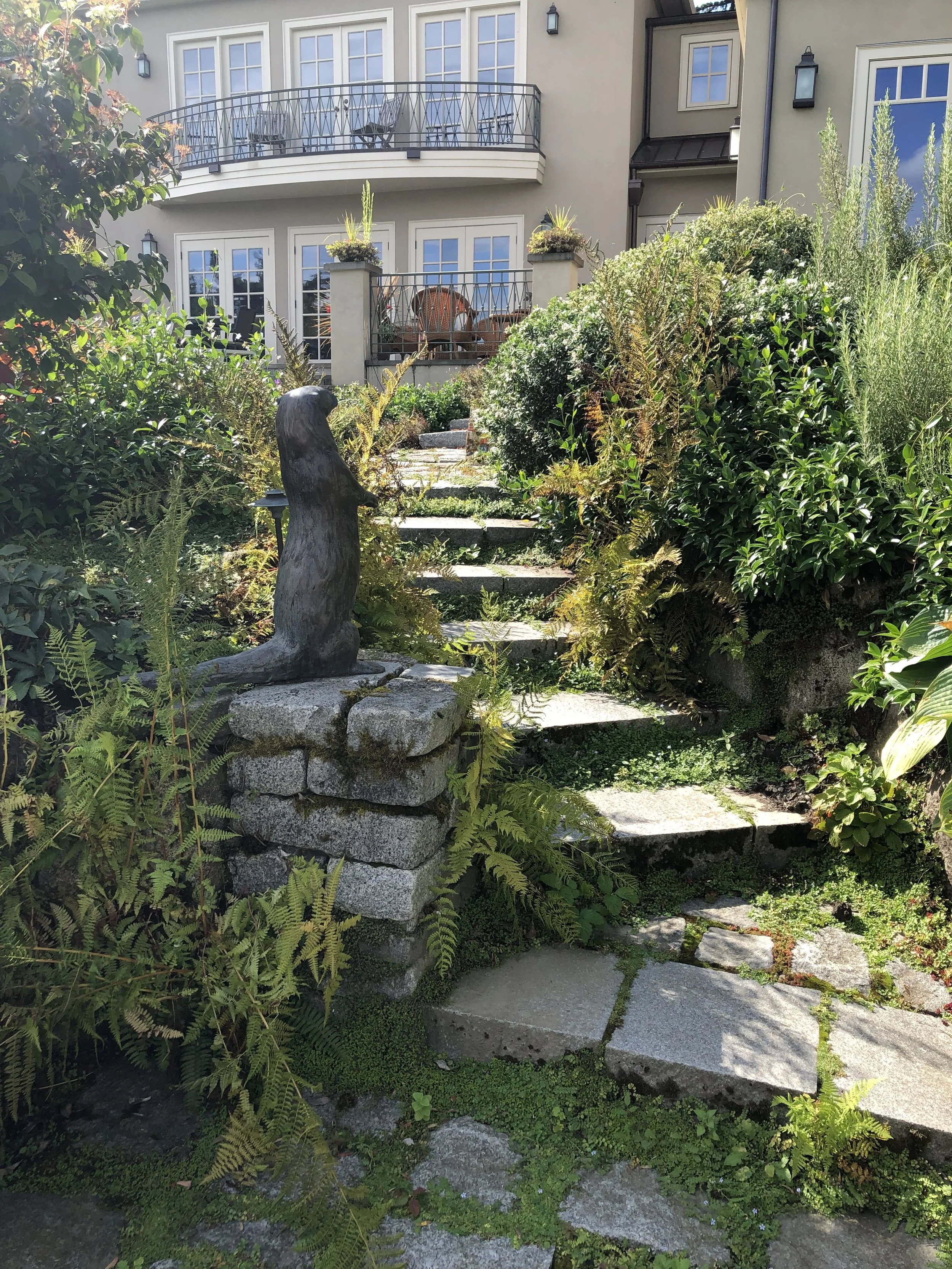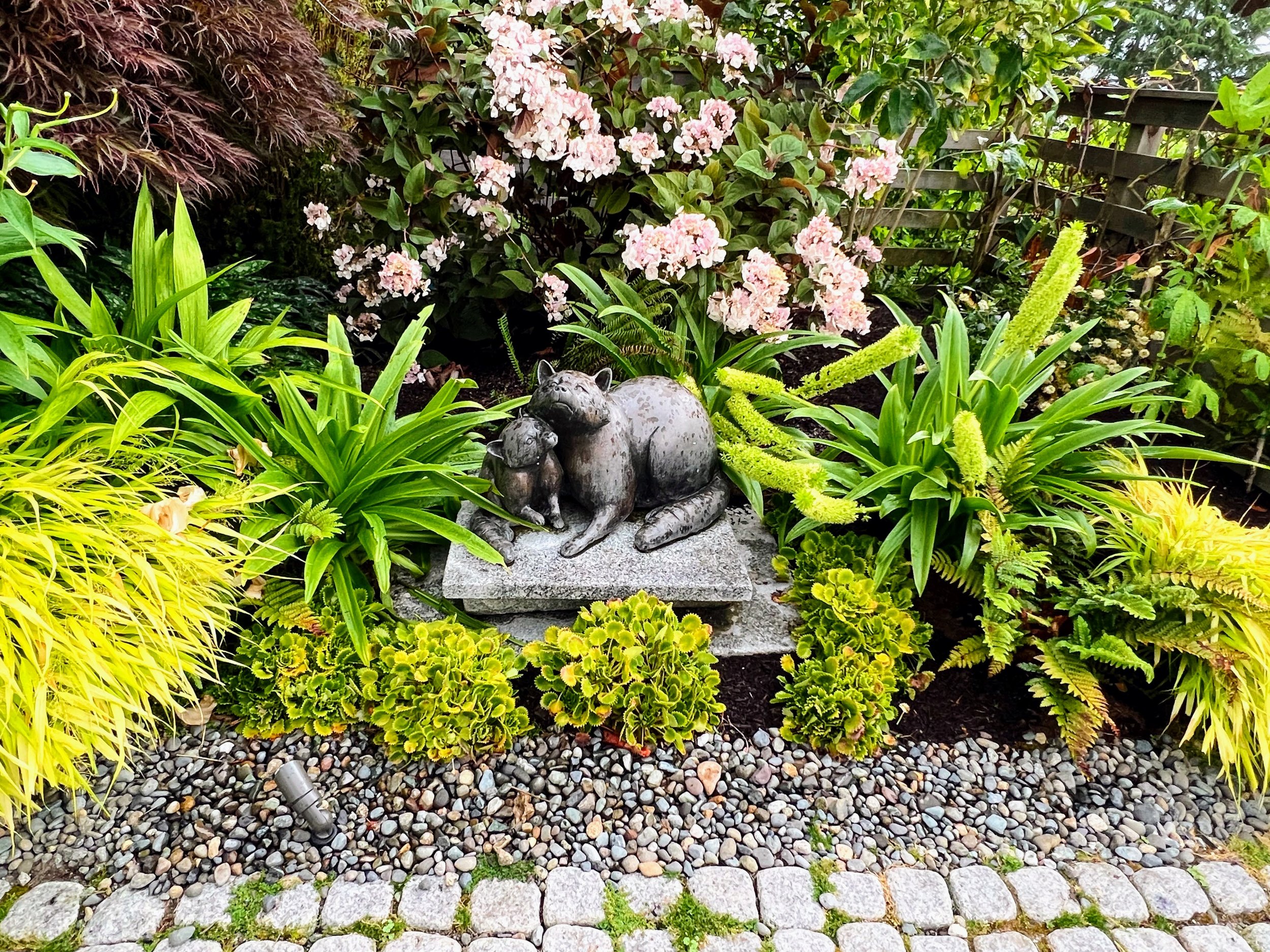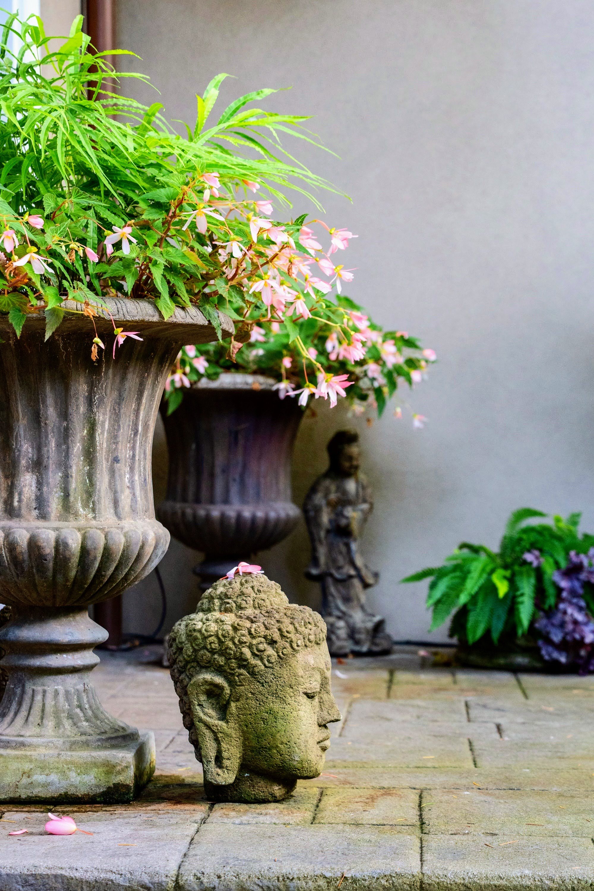 Find homes for existing artwork and use them as focal points in the garden rooms.