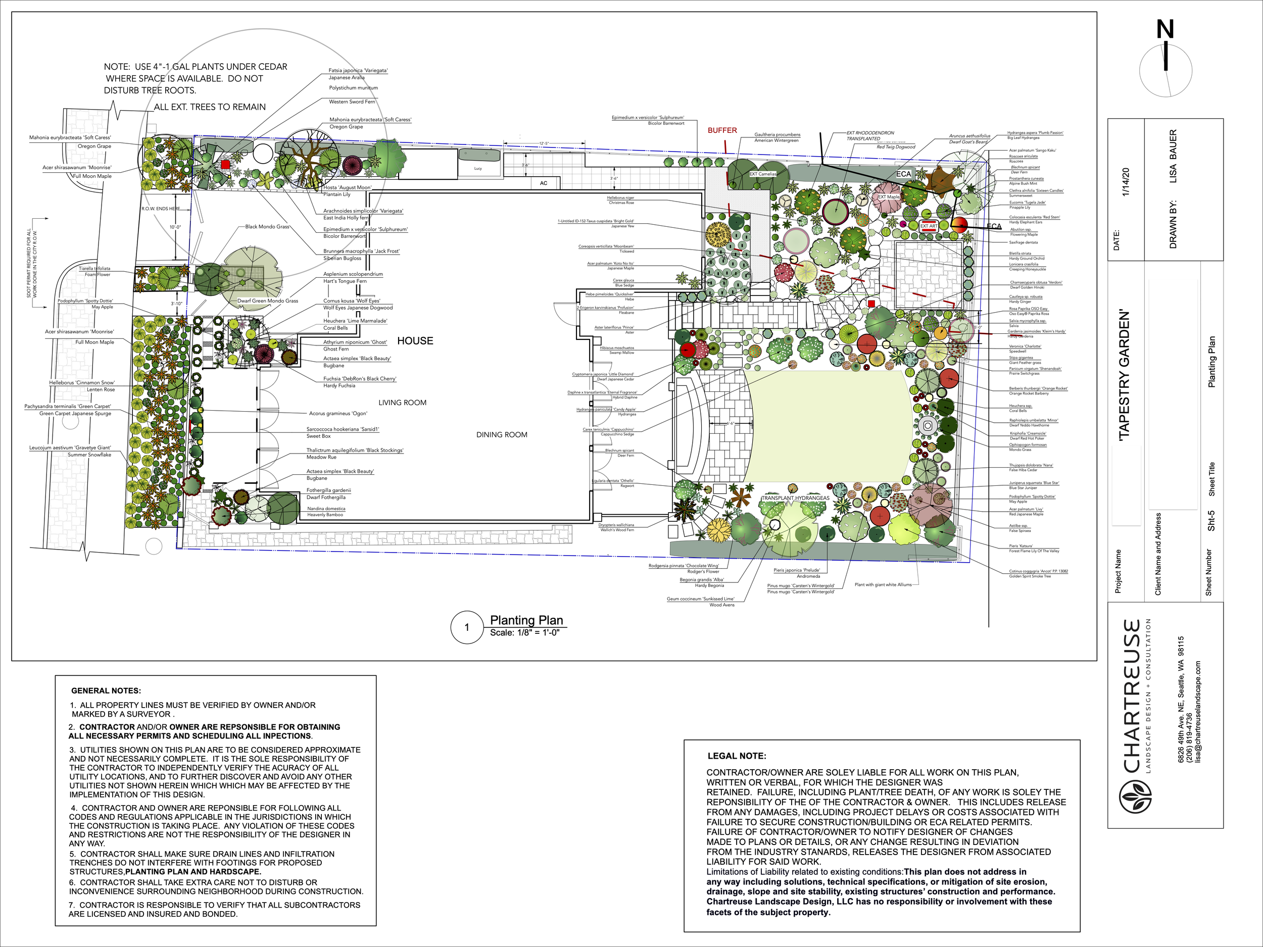 Create a lush looking drought and shade tolerant woodland garden to compliment the house and provide evergreen bones during the winter.